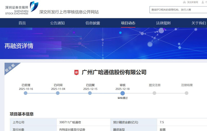 中国经济网北京12月19日讯广哈通信(300711.SZ)向特定对象发行证券事项昨日获得深交所审核通过。