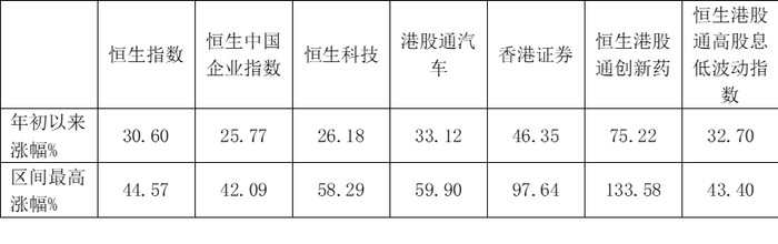 表:年初至今港股宽基及部分行业主题指数涨幅情况